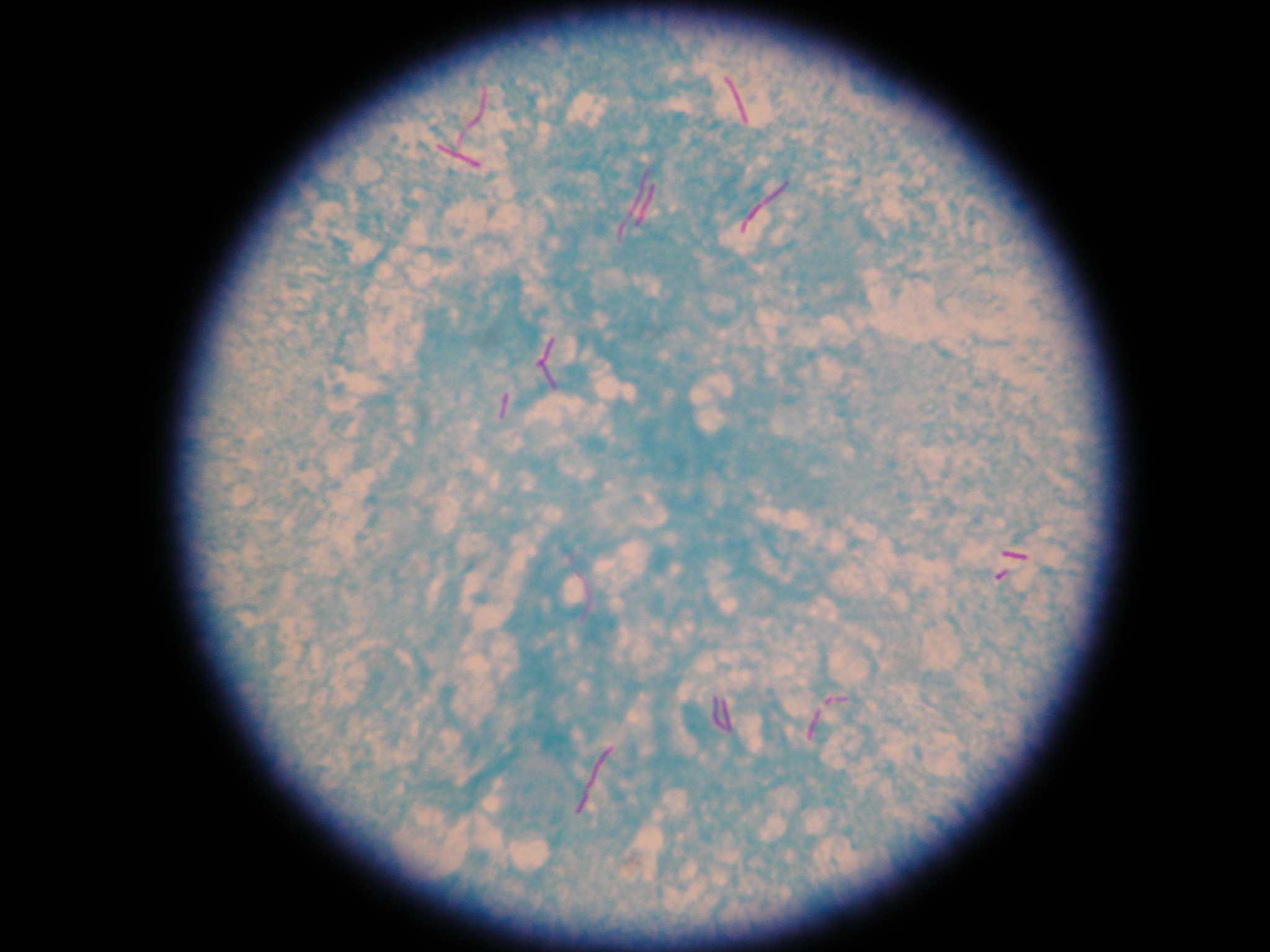 染色效果(Zeihl-Neelsen熱染法×1000)