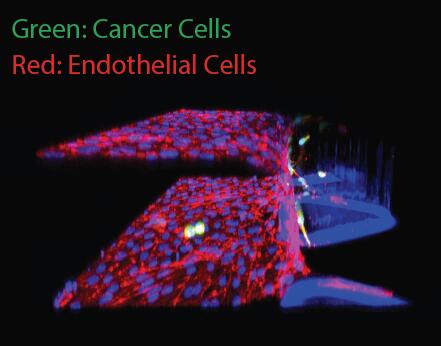 (2)內(nèi)滲:腫瘤細(xì)胞通過(guò)內(nèi)滲轉(zhuǎn)移進(jìn)入循環(huán)系統(tǒng)是癌擴(kuò)散至關(guān)重要的一步。AIM芯片可以在接近于腫瘤微環(huán)境的情況下創(chuàng)建內(nèi)皮單層,然后就此作為癌癥細(xì)胞內(nèi)滲的模型。